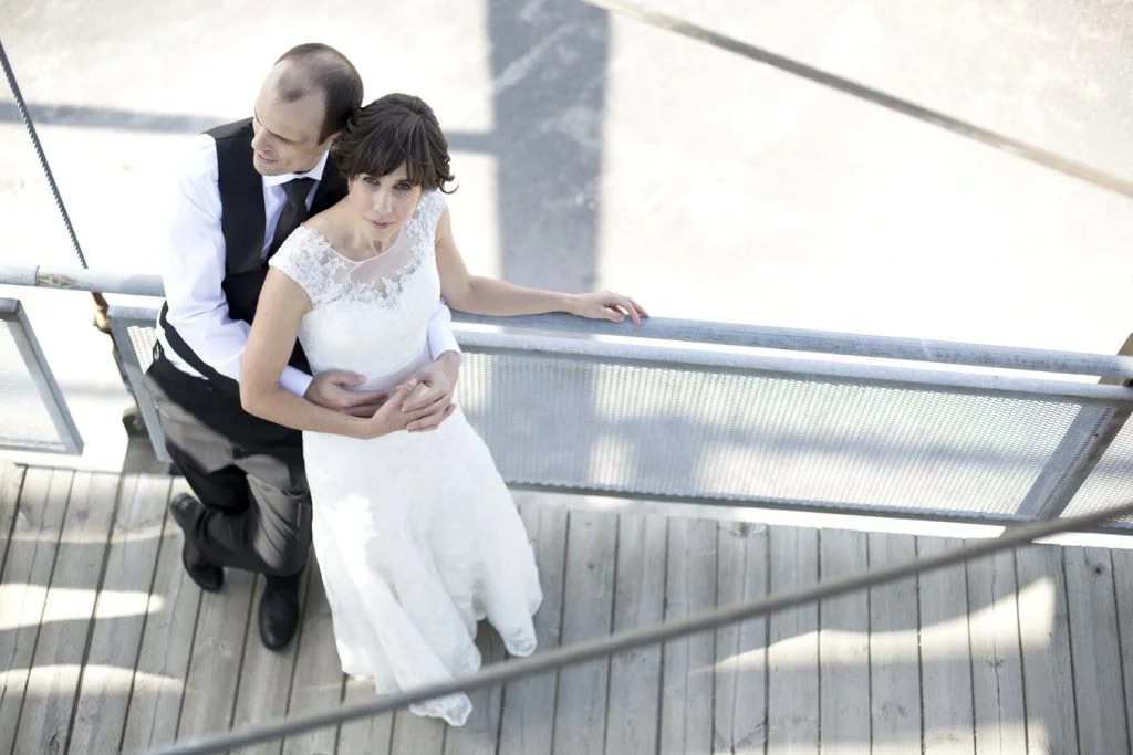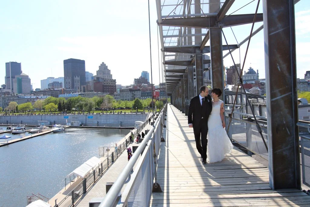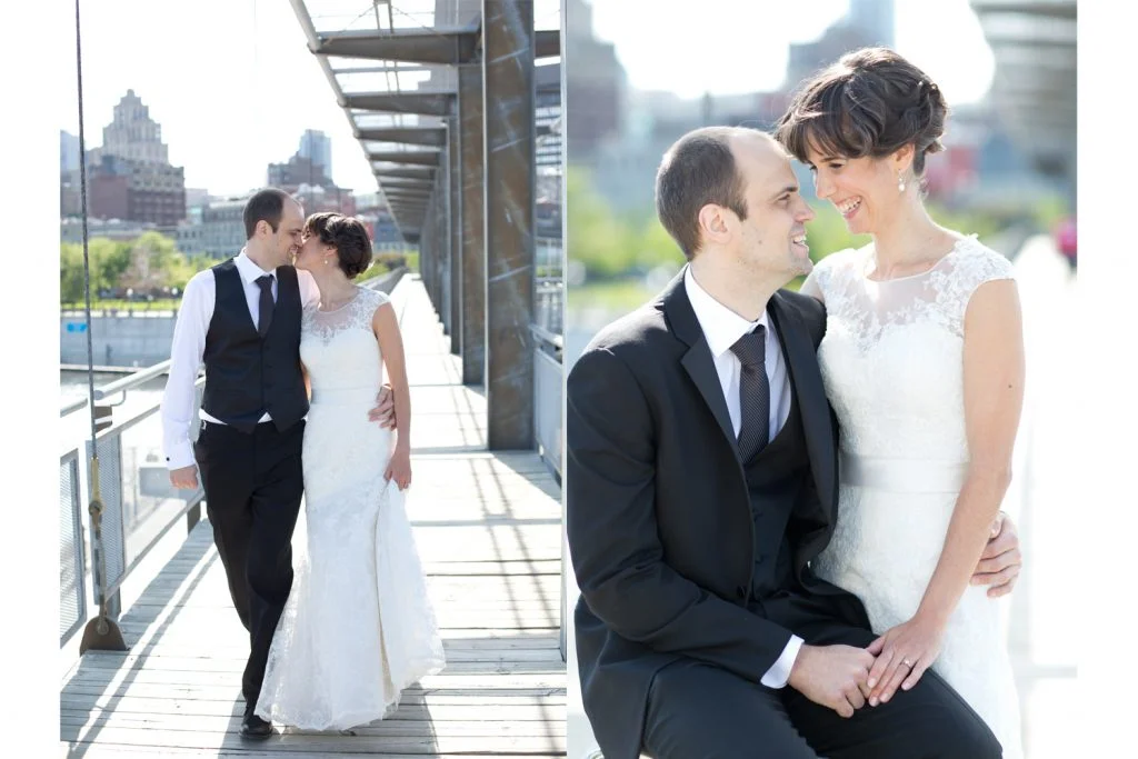 Since the day was very warm, we decided to take the couple on a walk through the Old Port and take their portraits before the ceremony. We walked to one of the metal constructions by the water and took our shots to show the opposition of elegance of the Old City’s architecture, modern style and, of course, sensuality of two people in love. Alexandra and Trevor did not need a lot of direction from their photographers, they were so natural in their way of showcasing their love, that we could not stop taking pictures of these two smiling at each other.