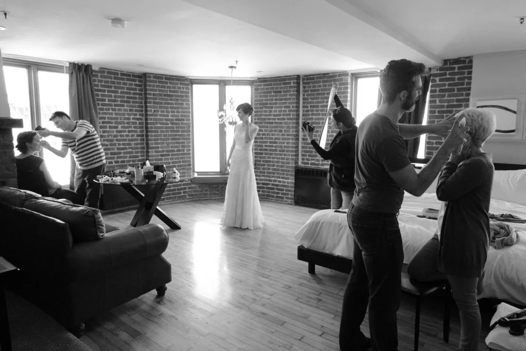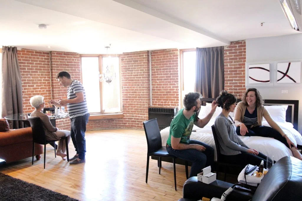 On this wonderful and sunny May day, Alexandra and Trevor decided to tie a knot in a very cozy and private wedding in Montreal’s Old Port. The day started at the bride’s getting ready. Alexandra was getting ready for this special day at one of the lofts situated in the heart of the Old Port above L’Auberge Saint-Gabriel, where later on her and Trevor had their ceremony as well as reception.