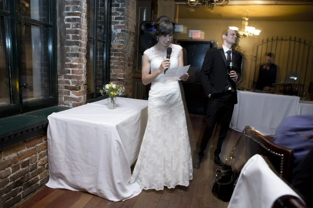 After couple’s shoot, we returned to L’Auberge Saint-Gabriel where guests already started arriving. In a very simple but gentle ceremony, Alexandra and Trevor promised to love each other till the end of days in front of their families and friends.